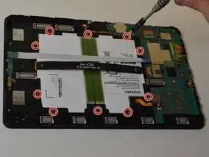 Отвинтите десять винтов Phillips #000 длиной 4 мм, фиксирующих батарею.
