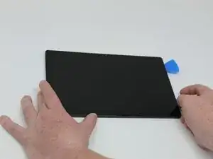 С пластиковыми монтажными лопатками аккуратно продвигайтесь вокруг экрана по одному углу за раз. Каждые несколько дюймов оставляйте дополнительную лопатку на месте, чтобы удерживать экран при продолжении удаления клея.