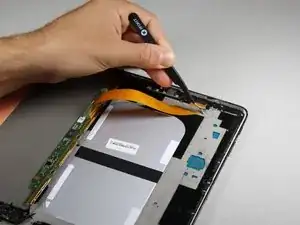 Отделите сборку экрана от задней панели, вставив шлицевые инструменты между двумя компонентами.
