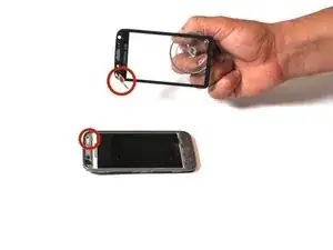 Прикрепите присоску к экрану. Следите, чтобы не ставить присоску на треснувшую область.