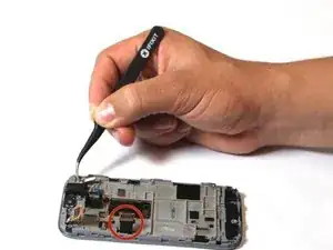 После отделения аккуратно извлеките шлейф из показанного разъёма. Теперь вы можете заменить разбитый экран на новый.