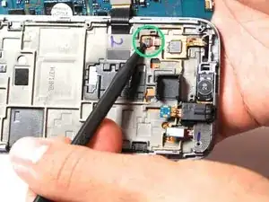 Поместите инструмент под отмеченный шлейф и аккуратно потяните, чтобы отсоединить шлейф от платы.