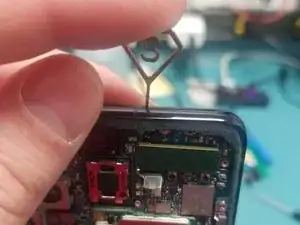 Я использовал пластиковый инструмент, чтобы приподнять сверху/снизу и захватить его пальцами.