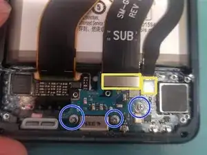 Снимите 5 винтов PH000 над портом зарядки, снимая динамик