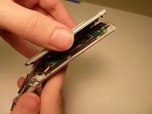 Начиная с конца, аккуратно подденьте переднюю панель, чтобы отделить её от телефона. Для этого шага используйте пластиковый инструмент для вскрытия.