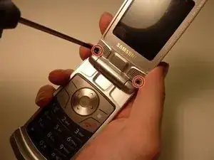 Найдите два винта (3 мм) у основания верхней части телефона.