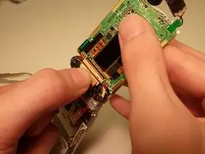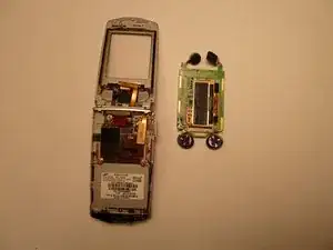 Осторожно поднимите экран вместе с платой одним блоком из телефона пинцетом.