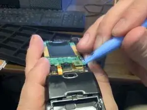 Снимите переднюю панель телефона с помощью пластикового инструмента для вскрытия.