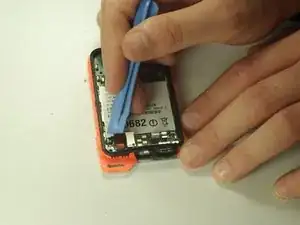 Снимите защиту аккумулятора с помощью пластикового открывателя.