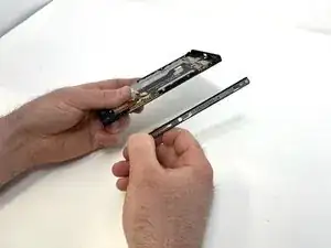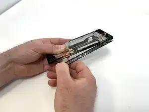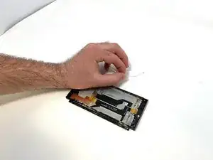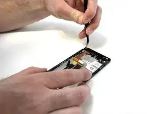 После раскрытия отлейте боковую панель от телефона, разъединив клей, удерживающий две части вместе.
