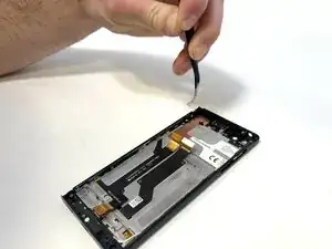 С помощью пинцета с изогнутыми концами снимите кнопки питания и регулировки громкости.