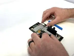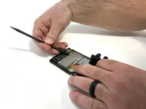 Используйте пластиковый инструмент для вскрытия, чтобы приподнять разъем батареи.