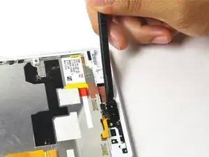 Отсоедините разъём наушников, поддев его вверх лопаткой.