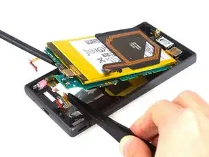 Отсоедините контакт NFC и контакт вспышки.