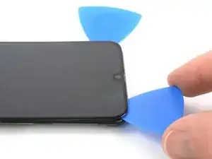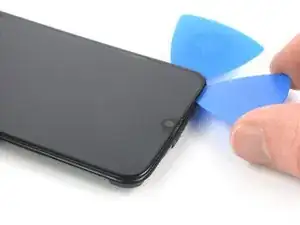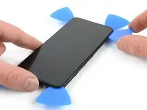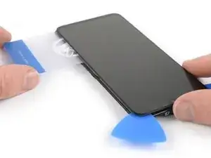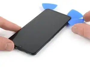Вставьте вторую монтажную лопатку и проведите её к нижнему правому углу экрана, чтобы разрезать клей.
