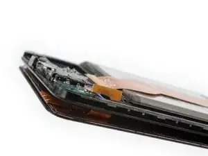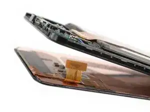 Старайтесь пока не снимать дисплей полностью — кабель дисплея всё ещё проходит через рамку и может быть приклеен внутри средней рамки.