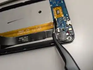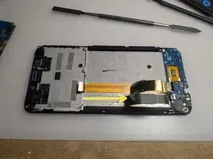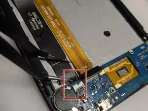 Отсоедините разъёмы дисплея-цифрового сенсора и нижней платы с помощью лопатки.