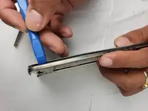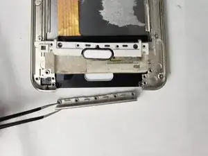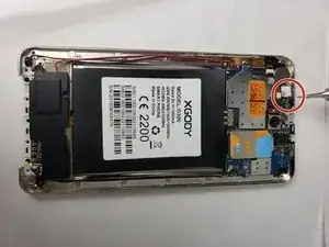 Теперь, когда фиксатор корпуса доступен, удалите его, захватив пальцами или пинцетом и резко потянув, пока он не отойдёт от устройства.