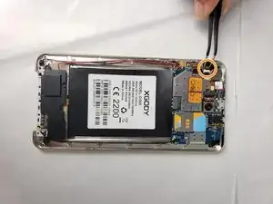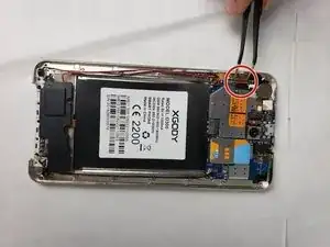 После отключения проводов от платы снимите защитную наклейку, закрепляющую проводку на смартфоне.