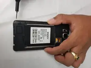 Ослабив и извлекши все винты, используйте лопаточку и пинцет, чтобы приподнять кожух по краям. Кожух приклеен к смартфону клейкой подушечкой — при необходимости аккуратно потяните сильнее, пока кожух не оторвётся от клейкого слоя.
