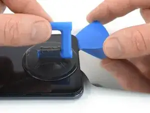 Поднимите экран с помощью присоски, чтобы создать небольшой зазор между экраном и рамкой.