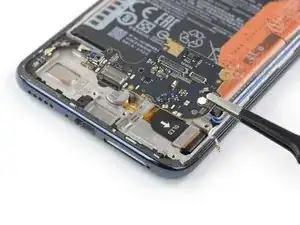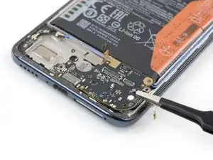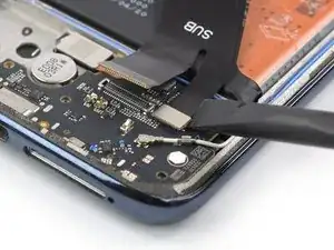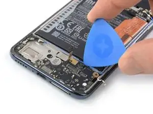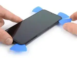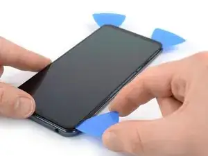 Защитный клей у Xiaomi Mi 10 Lite очень прочный, и в начале его трудно поддеть под панель дисплея. Вероятно, придётся применять iOpener более одного раза.
