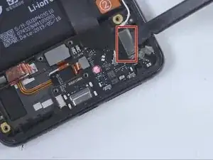 Используйте плоский конец лопатки, чтобы отсоединить шлейф дисплея.