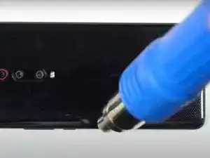 Используйте тепловой фен, чтобы слегка подогреть кромки задней крышки и размягчить клей, соединяющий заднюю крышку с остальной рамой.