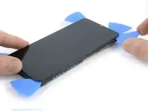 Вставьте вторую монтажную пластину и проведите ею к левому нижнему углу экрана, чтобы перерезать клей.