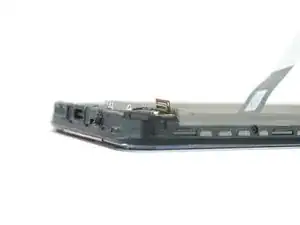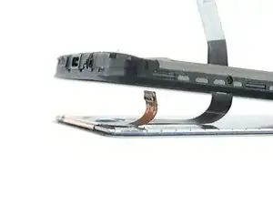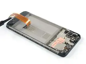 Проденьте шлейф дисплея через зазор в средней рамке и снимите экран.