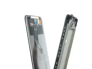 Постарайтесь пока не снимать дисплей полностью — шлейфы дисплея всё ещё продеты через рамку и возможно приклеены с внутренней стороны средней рамки.