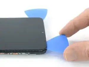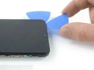 Используйте лопаточку, чтобы создать зазор между корпусом телефона и задней крышкой, поддев заднюю крышку у нижнего края экрана.