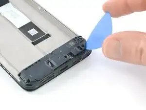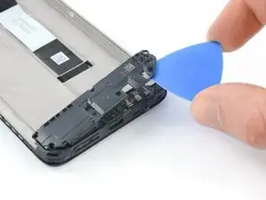 Проведите медиатор вдоль левого края Poco M3, чтобы освободить пластиковые защёлки.