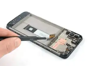 Используйте пинцет с притупленным носиком, чтобы отслоить основной шлейф дисплея от средней рамки.