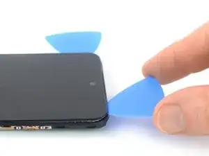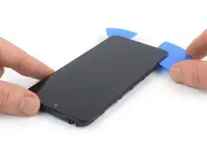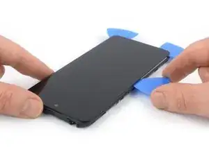 Просуньте плашку для вскрытия к нижнему правому углу экрана, чтобы перерезать клей.