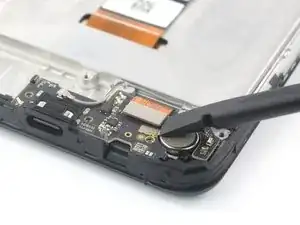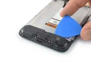 Используйте лопатку, чтобы отключить гибкий кабель питания и кнопок громкости, поддев разъём и выпрямив его вверх из розетки.
