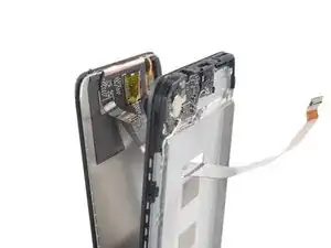 Гибкий кабель дисплея приклеен к модулю передней панели слабо сцепляющимся клеем.