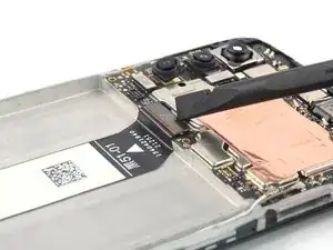 Если клеевая полоса оторвётся, попытайтесь достать её пальцами или тупым пинцетом и продолжите тянуть — но не поддёргивайте аккумулятор снизу.
