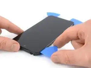 Вставьте четвертый медиатор под верхний левый угол телефона.