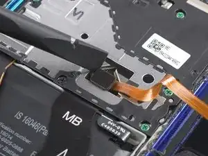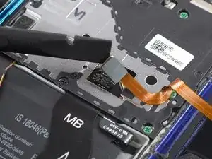 Используйте лопаточку, чтобы отсоединить сканер отпечатков, поддев разъём и отрывая его вертикально вверх из гнезда.