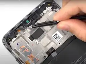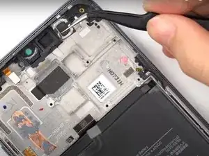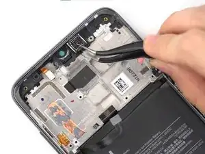 С помощью пинцета снимите узел разговорного динамика.