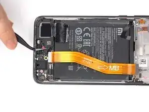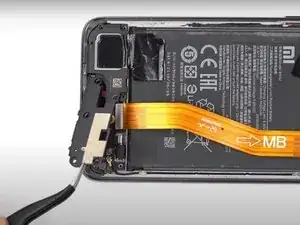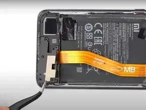 С помощью пинцета отключите маленький оранжевый гибкий кабель.