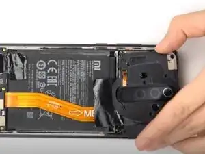 Аккуратно снимите узел с маленьким оранжевым гибким кабелем с помощью пинцета.
