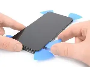 Вставьте второй открывающий медиатор и проведите его к нижнему правому углу экрана, чтобы перерезать клей.