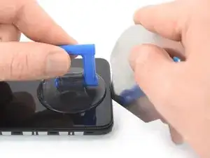 Когда экран станет тёплым на ощупь, приложите присоску к нижнему краю экрана.