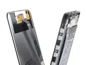 Не пытайтесь полностью отделить сборку телефона от задней крышки — шлейф датчика отпечатка пальца всё ещё подключён к плате.