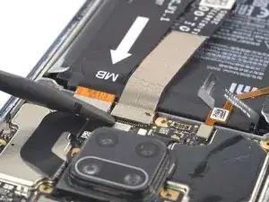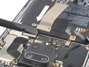Используйте лопатку, чтобы отключить шлейф батареи, поддев коннектор прямо вверх из разъёма.