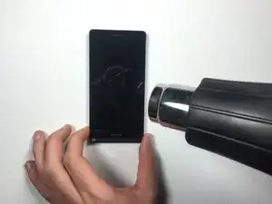 Используйте тепловую пушку, чтобы ослабить клей между дисплеем и корпусом.