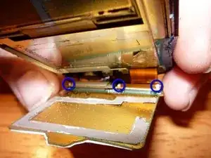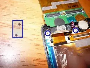 После снятия ЖК-дисплея необходимо выпаять соединение крошечного динамика (?) в верхнем углу. Конструкция состоит из двух слоёв, склеенных вместе. Просто нагрейте два контакта, слегка потянув их — и они легко разойдутся при плавлении припоя. Вам нужно будет подключить его к новому ЖК-дисплею.