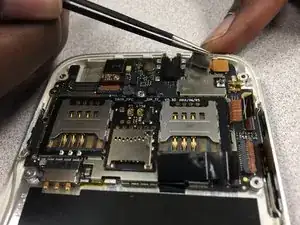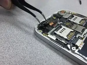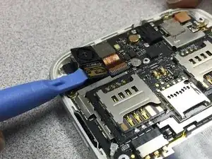 Аккуратно приподнимите камеру и используйте пинцет, чтобы вынуть её из телефона.